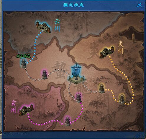 8、传送功能:玩家在战斗过程中,点击鼎战界面查看据点状况即可;
