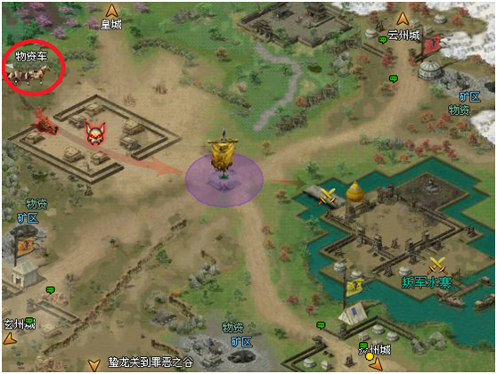 4、当每个整点的55分时,阵营物资车还没有到达阵营营地,物资车上的财物会爆出;若物资车没有变成任何阵营的,那么物资车到达叛军大营,车上财物不会爆出。
