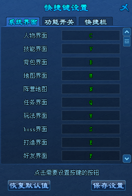 可点击游戏界面右下角“设置”—“快捷键设置”查看相关功能快捷键;