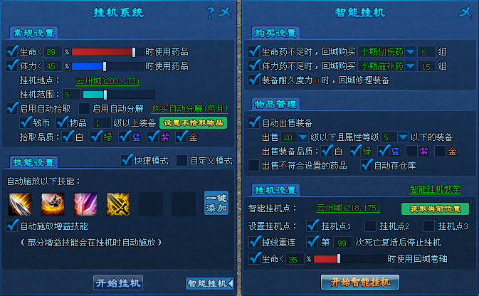 2、玩家可打开智能挂机界面(快捷键Ctrl+Z),对智能挂机功能进行设置;