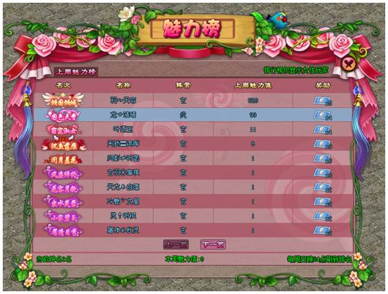 3、每周日晚24点榜单更新排名,而排行榜上的玩家会获得对应的奖励,前10名玩家会额外获得魅力称号。