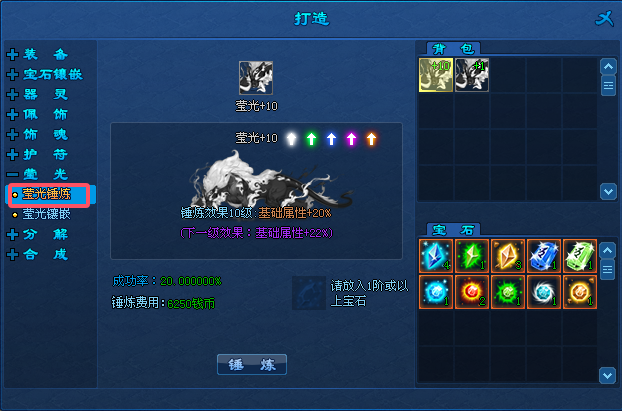 2、左键点击包裹内的荧光,将其放置到锤炼栏中;