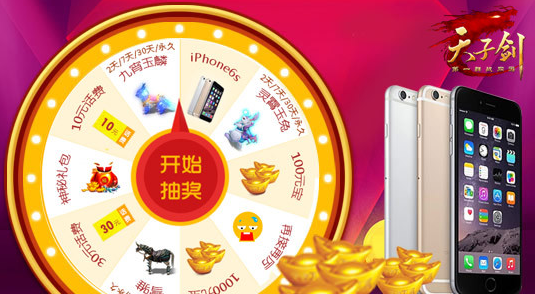 活动奖励:本次活动为诸位大侠准备了丰厚的大奖,iphone6s,手机话费,炫酷坐骑(含期限坐骑和永久坐骑),巨额元宝等,统统免费送哦,别问为什么这么任性,因为《天子剑》因你而精彩!