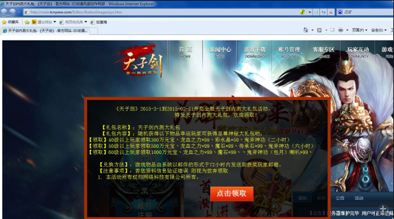 游戏内发布“天子封印宝盒”信息,让玩家到百度进行搜索。玩家一旦按骗子发布的信息进行百度搜索就会进入到骗子事先建好的虚假官网(千万注意了:除了需输入帐号密码的页面是假的,其他页面的连接均连到正式官方网站),这里要特别提醒一下,凡是官方举办的所有活动都不需要玩家在页面上输入帐号及密码的,凡是要求玩家输密码的,绝对是骗子无误!