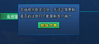 点击服务器列表“乱世雄风”,点击“确认选择”按钮后如出现下图的提示则须重新下载安装客户端。