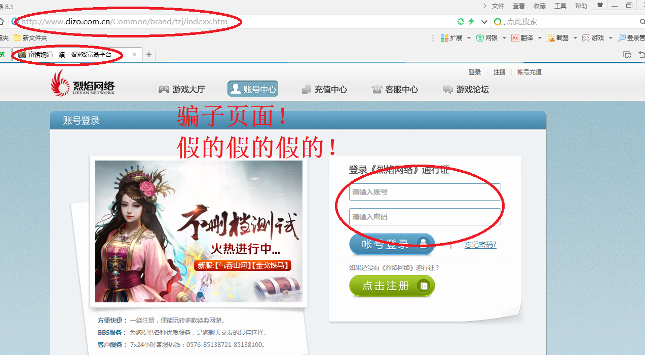 友情提醒:如果有玩家曾经登陆过此类骗子网站,请迅速在正式官网上修改自己的用户密码,以防被盗号!