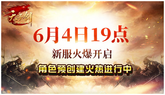 为群战而来!《天子剑》新服【驰骋沙场】将于2016年6月4日火热开启啦!目前新服的角色预创建功能正式对所有玩家开放啦!想在新世界中打造属于你的传奇?想为新征程书写属于你的篇章?赶紧快来抢占先机,不容错过哟!