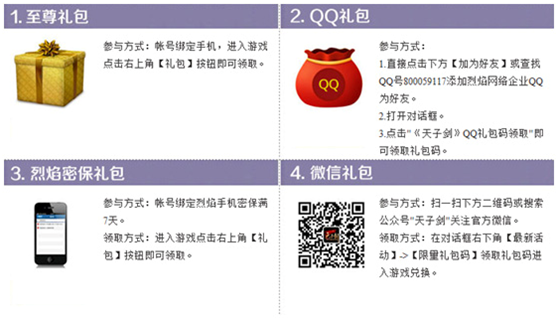 3、点击"《天子剑》QQ礼包领取"即可领取礼包码一枚