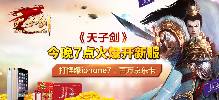 为群战而来!《天子剑》今晚7点新服火爆开启,多重福利免费赢取,极品道具,酷炫坐骑,海量元宝,更有百万京东购物卡、iphone7!当然,除了各种好礼,游戏的玩法也是不少玩家关注的焦点,此次新版新服可是带来了不少新内容和玩法,快来与小编一起前去看看吧!