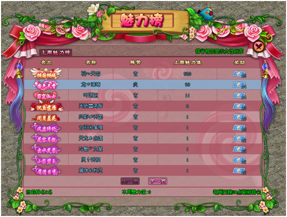 2、每周系统将根据魅力值进行排名;