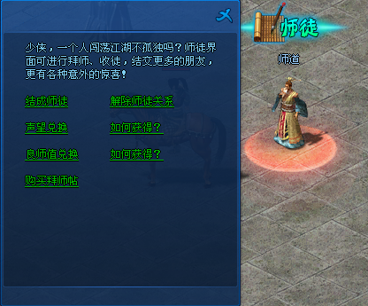 拜师:1级即可拜师,≥50级则需要拜师帖,才能拜师;