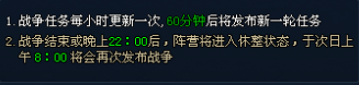 1、除休整外,其他时间可参与战争任务,期间每小时更新一次;