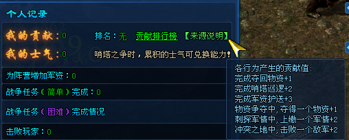 4、完成战争任务亦可获得一定的贡献,登上贡献排行榜,可获得额外奖励。(可在游戏内排行榜查询奖励一览)