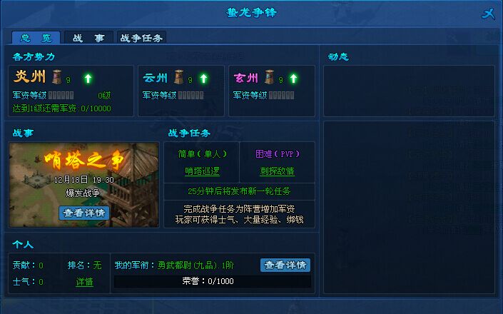 3、完成战争任务为阵营增加军资,玩家自身可获得士气、经验等
